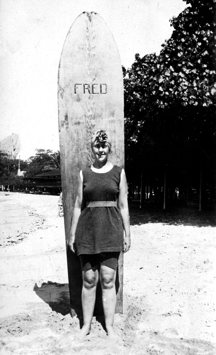 Famous mystery writer Agatha Christie was a private person, but when she was younger she was very active. One of her favorite activities was surfing, as seen in these two photos of her during her younger days. She has the distinction of being one of Britain’s first female surfers.