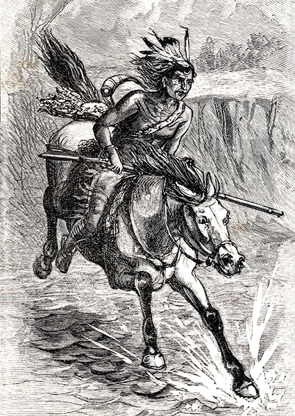 He turned Arrow back and moved quickly up a hollow to give his powerful horse a good running start. Then he galloped back down and leaped off the bluff, diving into the river. Arrow surfaced and swam to the other side amidst musket balls splashing around them. Both Weatherford and Arrow made it to shore, out of the range of Carson’s troops, unhurt.